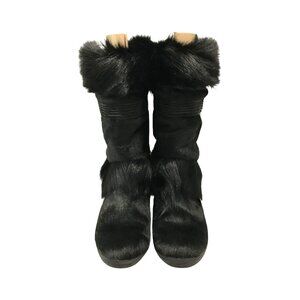 Tecnica Skandia Black Fur Boots Womens Size 7 Italy Apri Ski
