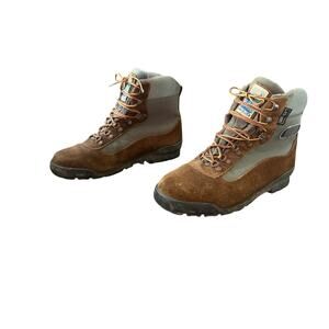 The Tecnica Trekking Hiking Cervino Boots are versatile outdoor footwear designed for both trekking and hiking. Made with Gore-Tex technology, these boots offer superior protection against the elements while staying breathable. The brown suede and green canvas combination adds a stylish touch to the multi-color design, making them both functional and fashionable for outdoor adventures. With a US size of 11, these boots are sure to provide comfort and support for men on the trails.