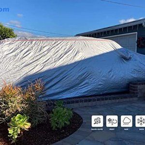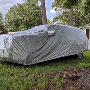 【Premium Material】Made of an upgrade high-density Polyester 300D that's lightweight yet durable enough to protect your car, the maximum tensile strength up to 20 MPA. The textile of fabric is waterproof and heat insulation, yet air permeable and fast drying.