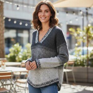 Slip into the TECSE Artisans Alpaca Pullover and experience the unparalleled softness and insulating power of premium Alpaca wool. The gradient gray colorblock design and Aztec-inspired trim give this pullover a modern, stylish look that will have you feeling both comfortable and confident.