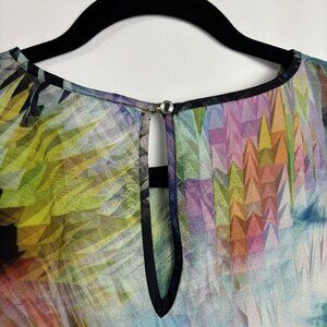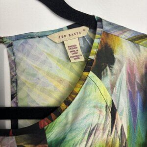 Ted Baker 0 XS Smocked Blouse Keyhole Back Scoop Neck Ruffled Janni Print Color