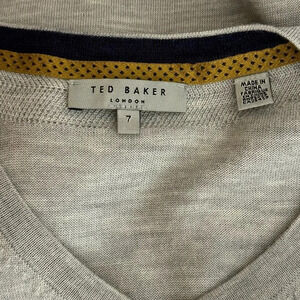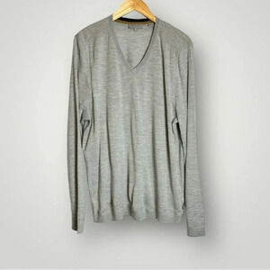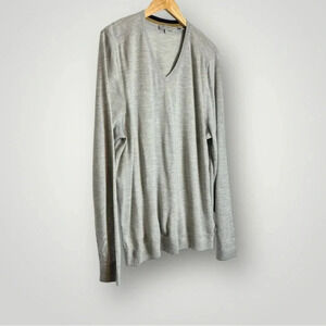 Ted Baker 100% Merino Wool V Neck Sweater Size 3XL Long Sleeve Pullover Gray