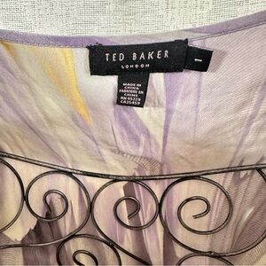 Ted Baker 100% silk abstract flutter sleeve blouse size 1