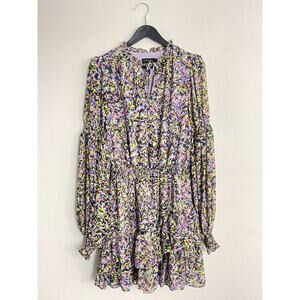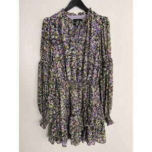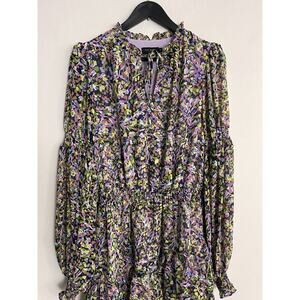 Ted Baker 2 USA 6 Dress Karlie Long Sleeve Floral Poet Sleeve Smocked Waist