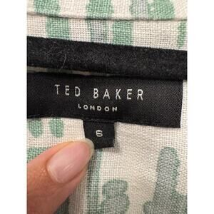 Ted Baker 2XL Men's White Green Compter Revere Print Linen Long Sleeve Button