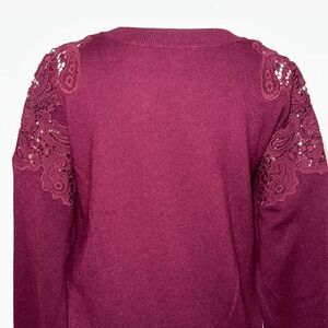 Ted Baker 3 M Tae Burgundy Scoop Neck Merino Wool Shoulder Lace Knit Sweater