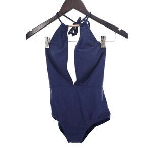 Ted Baker 4 One-piece Swimwear Plunge Cutout Halter Swimsuit Bathing Suit Blue