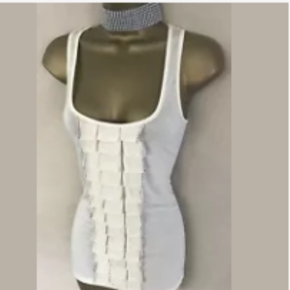 This Karen Millen tank top is not just a regular tank top. The ribbon embellishments are a sweet classy touch to the regular tank top. It’s a soft cream color. Beautiful for the summertime