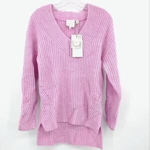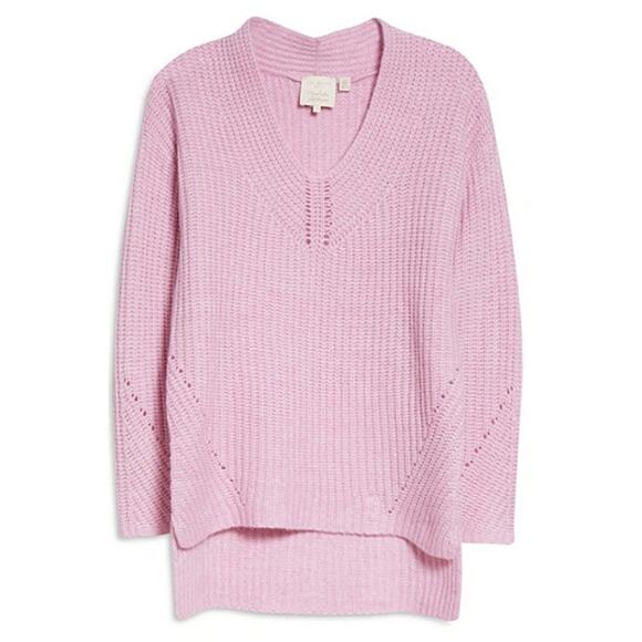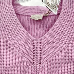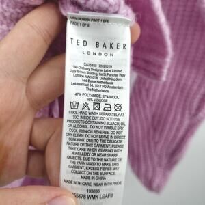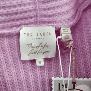 TED BAKER WMK-LeafII Oversized High-low V-neck Long Sleeve Wool Blend Sweater In Lilac. New with tags. Available in TB size 1 (0-2) and size 6 (16). An on-trend high-low hem adds to the appeal of a comfy oversized sweater in a luscious shade of lilac that can't help but improve your day.