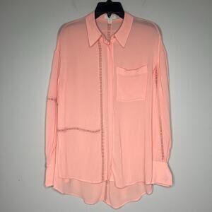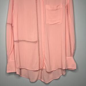 Ted Baker Agniss Lace Trim Tunic Button Up Blouse Size 2 Sheer Fairy Peach Pink