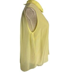 Ted Baker Alima Butter Yellow Pleated Collar Chiffon Sleeveless Blouse Size 4