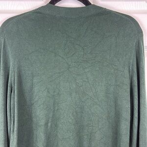Excellent condition Aniebal dark green fringe sweater! Fun green fringe detail across chest and down sleeves. Fabric has a very subtle tie dye appearance as tried to capture in pics.
