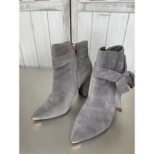 Ted Baker Ankle Boots Bow Accent Women Booties Leather Suede Gray Size 37 US 6