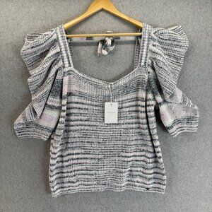 Ted Baker Aspel Puff Sleeve Marled Knit Sweater Tie Back Women Size 5 US 12 NWT