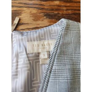 Ted Baker Avriild Check Plaid V-Neck Sleeveless Dress Charcoal Gray Size 3