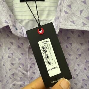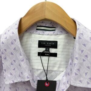 Ted Baker Barhill Geometric Print Stretch Short Sleeve Button-Up Shirt Lilac size 3X