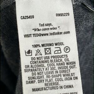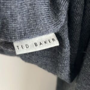 Ted Baker Batatak 100% Merino Wool Slim Fit Gray Sweater V-neck sz 6 Fits L