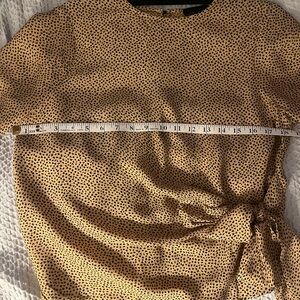 leopard print, viscose blouse, tie waist, animal print top, draped shirt, tan spots, sophisticated style, subtle pattern, lightweight fabric, elegant vibe Chic Ted Baker blouse with a striking pattern. Ideal for versatile styling.