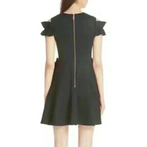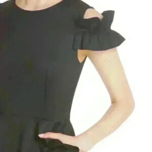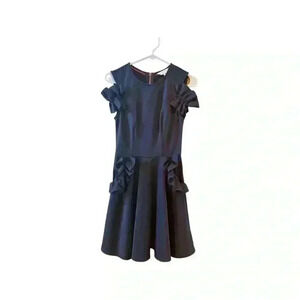 Ted Baker Black Deneese Cold Shoulder Navy Ruffle Pockets and Sleeves, Sz 0.