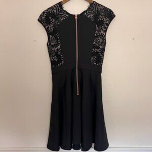 Ted Baker Black Dress Women's 1 Vivance Lace Top Neoprene Fit & Flare skater