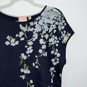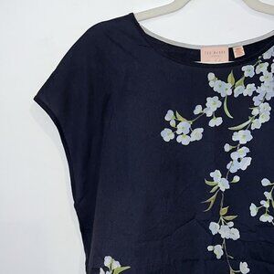 Ted Baker Black Floral short sleeves boat neck top size 3/ US size 8