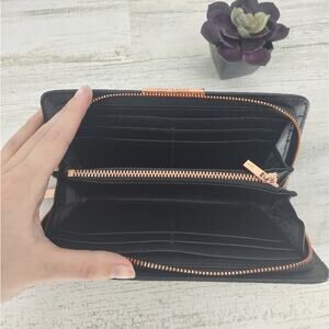 Ted Baker London Black Leather Zip Around Rose Gold Accents Billfold Wallet Clutch