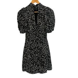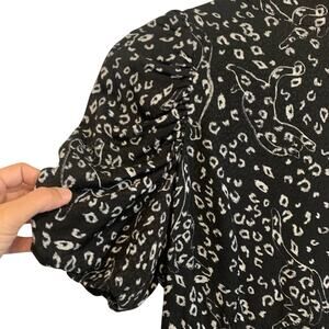 Ted Baker Black Leopard Cat Print Print Puff Sleeve Mini Dress