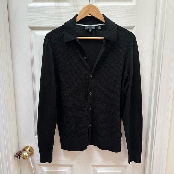 Ted Baker Black Ribbed button down collared cardigan Sweater 1 small