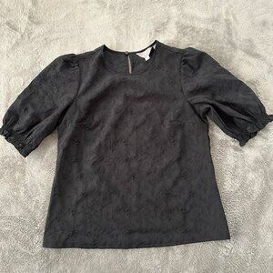 Ted Baker Black Textured Puffed Sleeve Blouse Top SMALL