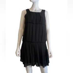 Ted Baker Black Tiered Flowy Pleated Mini Dress Size 1 (US Size 4) LBD zip up