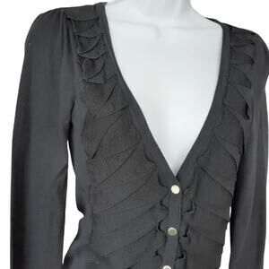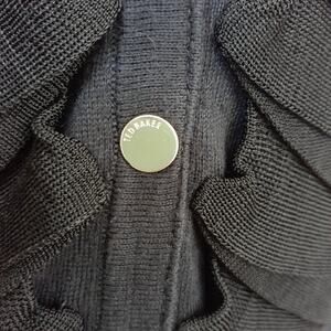Ted Baker Black V-neck Cardigan Sweater Ribbon Applique
