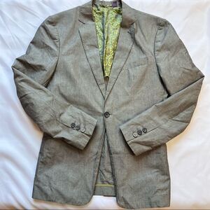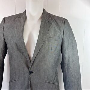 Ted Baker Blazer Cotton Linen Blend Metro Gray Microstripe Sport Coat Size 3 38R