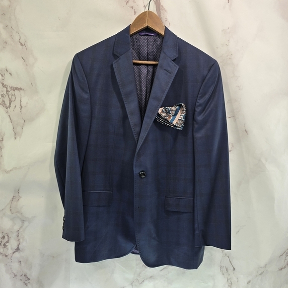 Ted Baker Blazer Mens 42 R Navy Plaid Wool Sport Coat Suit Jacket Jay Windowpane