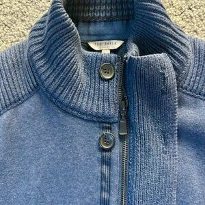 Ted Baker Blue Cardigan Button / Full Zip Up Fleece Lined Sweater Jacket - Sz. L
