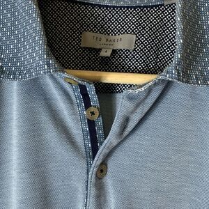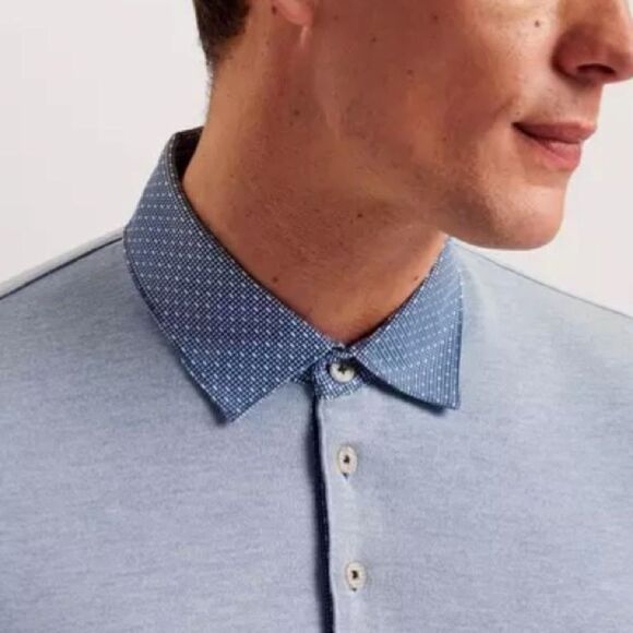 Ted Baker Blue Frend Polka Dot Collar Short Sleeve Polo Shirt Size 4 (US L)