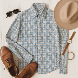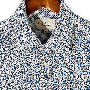 💬 “Sharp cotton button-down shirt, size 16 34/35. Features a rich blue medallion print with Ted Baker's signature tailored style—perfect for business casual, date nights, or elevated everyday looks. In excellent condition.