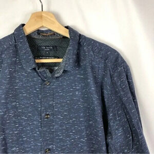 Ted Baker Blue Speck Print Long Sleeve Button Down 6/XXL