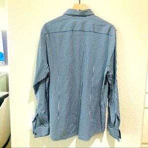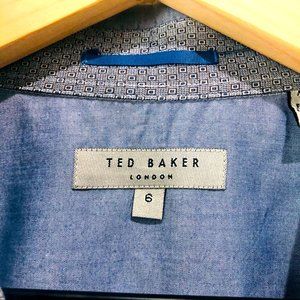 EUC. Ted Baker London Blue Stripe Button Down Shirt. Size: 6. No holes and no tears. Stitchings are intact all through out. Chambray and small square pattern on the inside and back collar. Slanted detailing on the front and back of the shirt (see photo). See all photos and video for visual description. Free shipping.