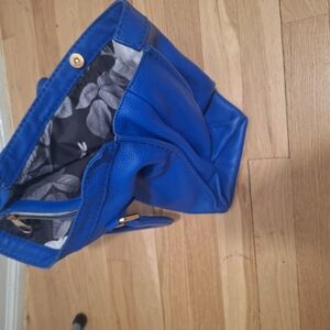 This Ted Baker tote bag in a striking blue hue is crafted with a structured design and features elegant gold accents. Its sturdy top handle and smooth texture make it a stylish and practical choice for any occasion.