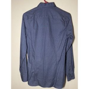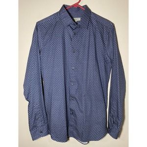 Ted Baker Blue White Geometric Print Long Sleeve Dress Shirt Men's Size 2 SMALL