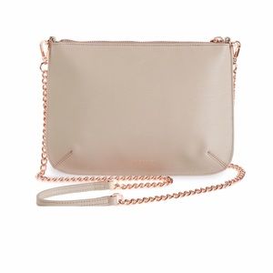 A signature bow charm sets off a textured leather crossbody bag fitted with a removable chain strap so you can keep your styling options open.