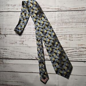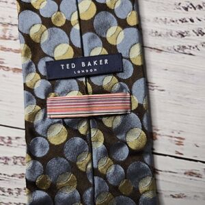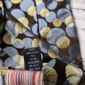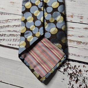 Ted Baker Brown Blue & Beige Woven Silk Geometric Circles Tie 59 X 4"