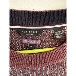 Ted Baker Burgundy Pullover Crew Neck Sweater Mens Long Sleeve Stretch Size 2XL. Condition is Pre-owned. Shipped with USPS Ground Advantage.