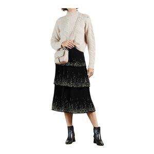 Micro accordion pleats bring an easy, playful moment to a flowy tiered skirt with floral print and lots of movement. At a midi length, it has a delicate floral trim making it the perfect piece for those Day to Night Events - Ted Baker womenswear collection