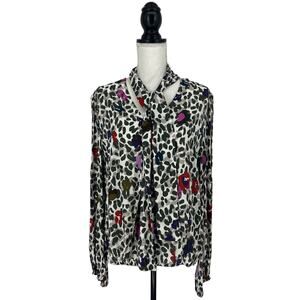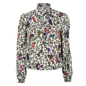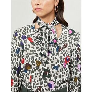 Ted Baker Charia Wilderness Tie Neck Blouse Ivory Leopard Print.