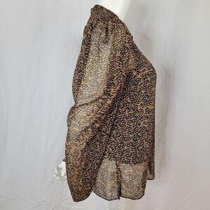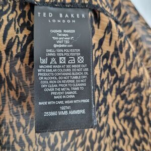 Ted Baker Chiffon Animal Print Exaggerated Shoulder Button Front Blouse Size 3