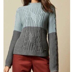 Ted Baker chunky cable knit sweater. Colorblock design. Long sleeve. Mock turtleneck. Cable knit. Like new, worn once.