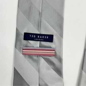 Ted Baker Classic Silver Tone on Tone Stripe 100% Silk Power Neck Tie. In excellent pre-owned condition.