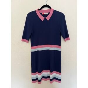Ted Baker Colour by Numbers “Origami” Striped Knit Polo Dress Navy Pink Size 1 US 4