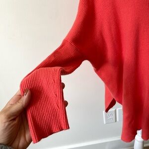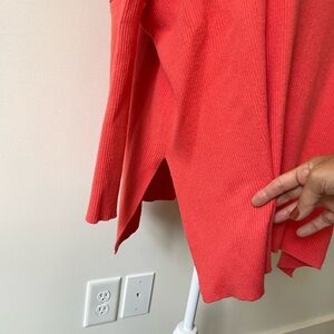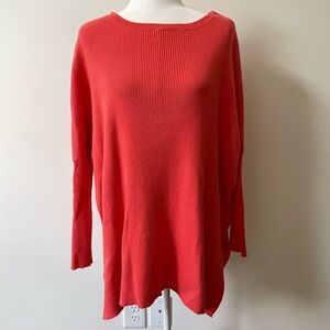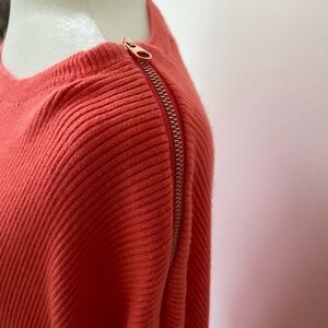 Ted Baker Coral Sweater Size Large Ribbed Boxy Zipper Shoulder Cotton